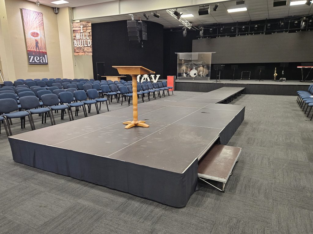 We have a good range of 2x1m, 1x1m and 2×0.5m stage pieces available for hire, with accessories to match. Get in contact to see how we can help!